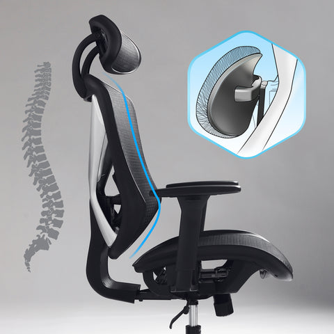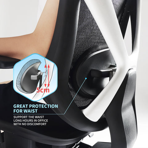 Currently, many so-called ergonomic chairs are designed to have a protruding back support, which closely attaches with our back, or even give our back some pressure. That is not what ergonomic design should be. Good ergonomic chairs give support to our waist, not pressure. Sitting long time on chairs with protruding back support might take a toll on the spine, and even cause back problems.